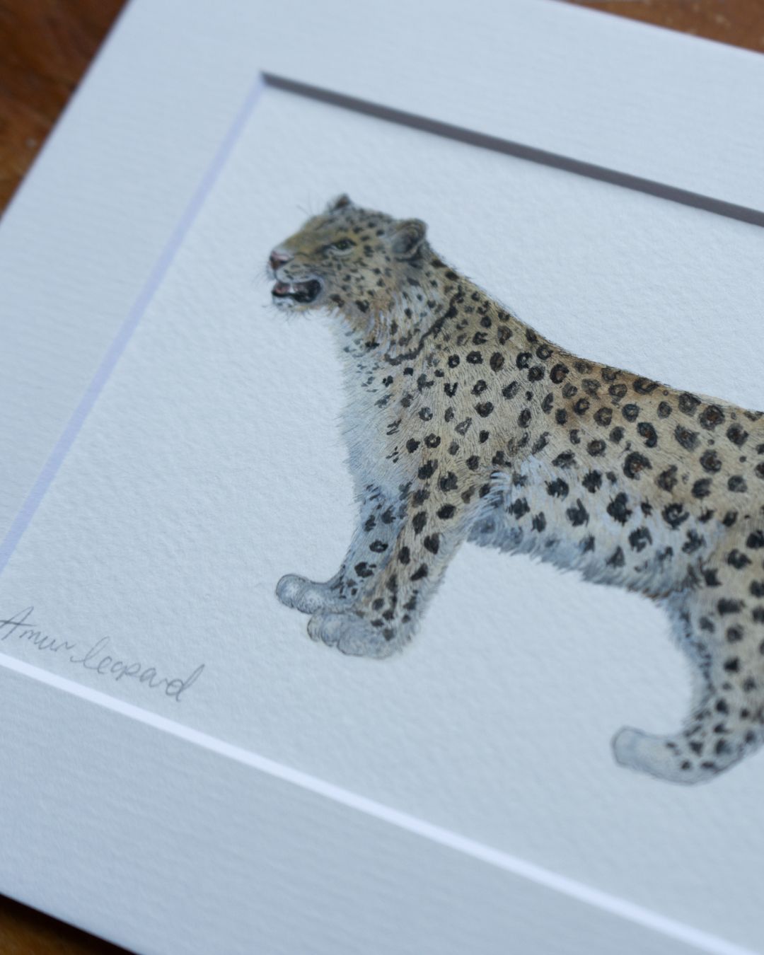 Nature-inspired original artworks by internationally selling marine wildlife artist, Rachel Brooks. This scientific illustration features the Amur leopard, Panthera pardus orientalis