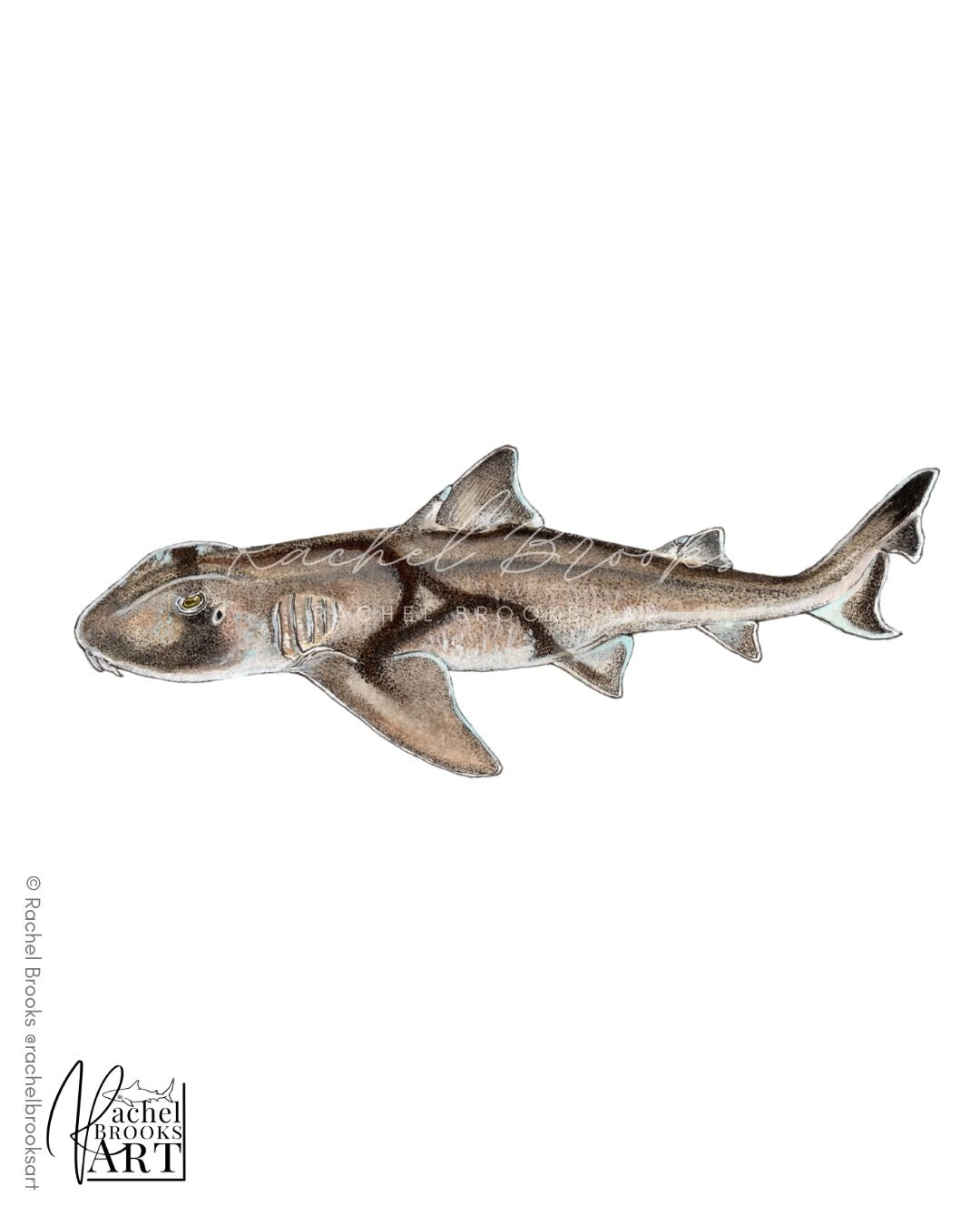 Nature-inspired original artworks by internationally selling marine wildlife artist, Rachel Brooks. This scientific illustration features the Port Jackson shark , Heterodontus portusjacksoni.