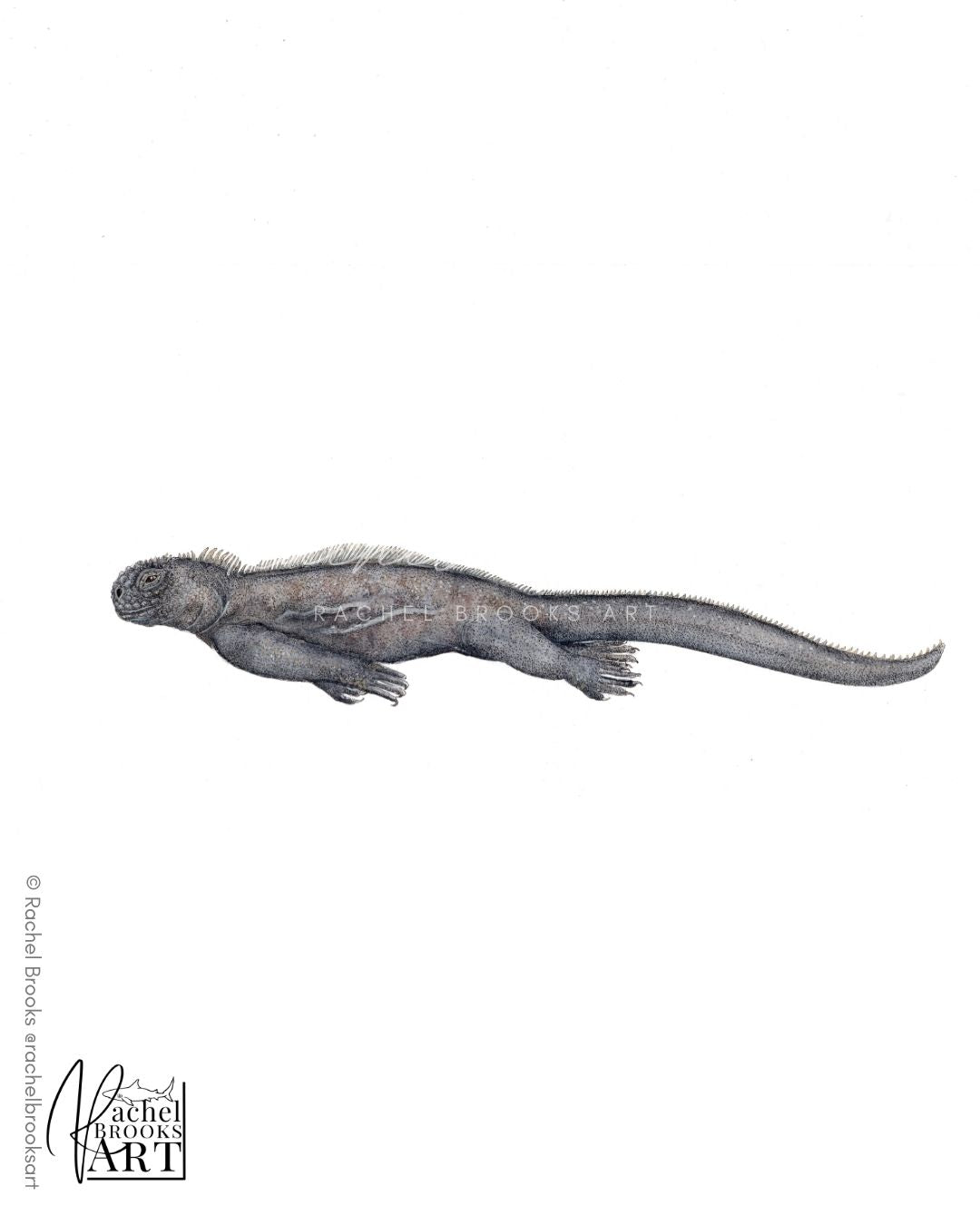 Ocean-inspired original artworks by internationally selling marine wildlife artist, Rachel Brooks. This scientific illustration features the marine iguana, Amblyrhynchus cristatus