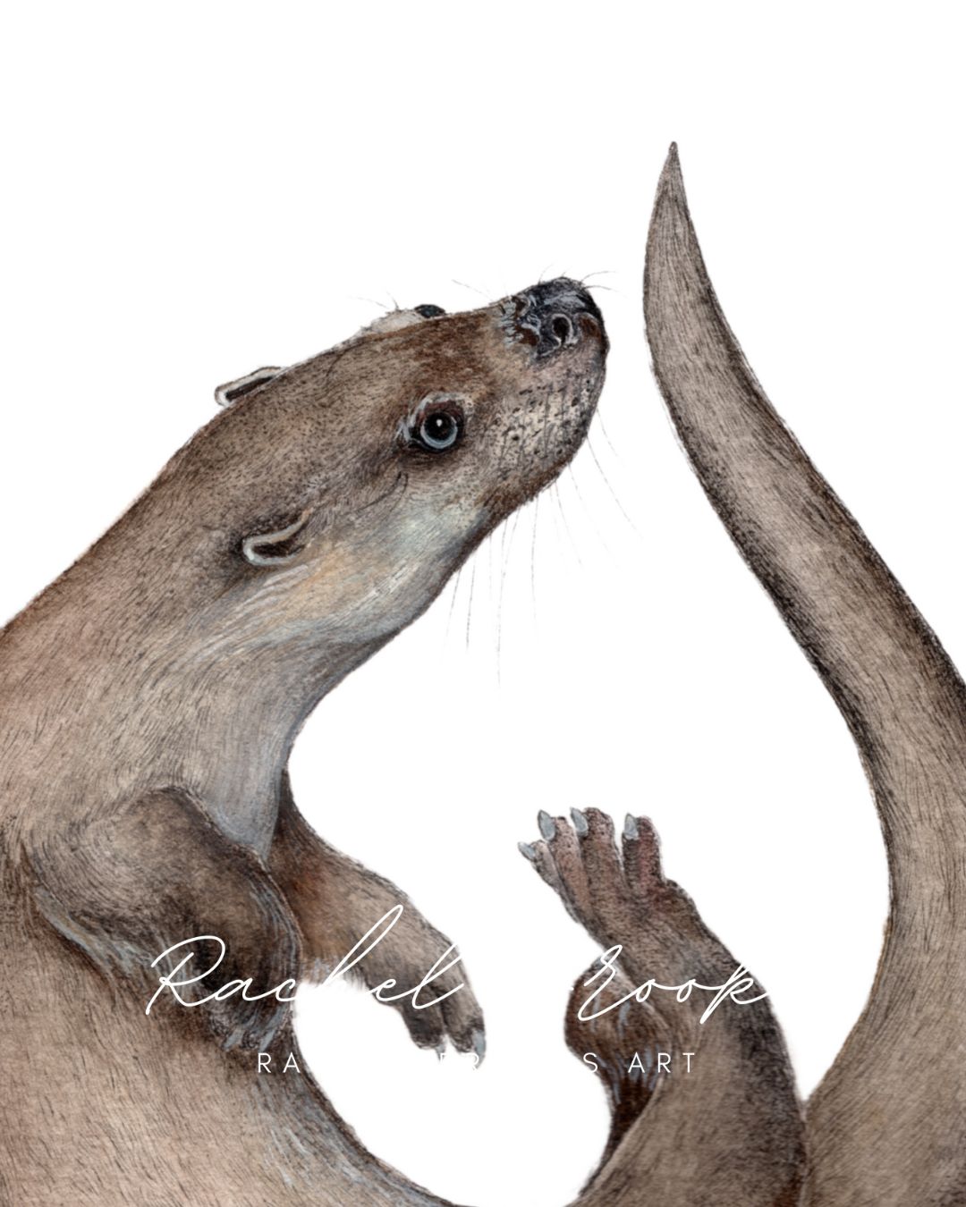 An art print of the beautiful eurasian otter , Lutra lutra. Ocean-inspired original artworks by internationally selling marine wildlife artist, Rachel Brooks. This scientific illustration features the eurasian otter. Each original drawing has been meticulously drawn in archival pigment ink and embellished with watercolour and gouache in Rachel's signature style.