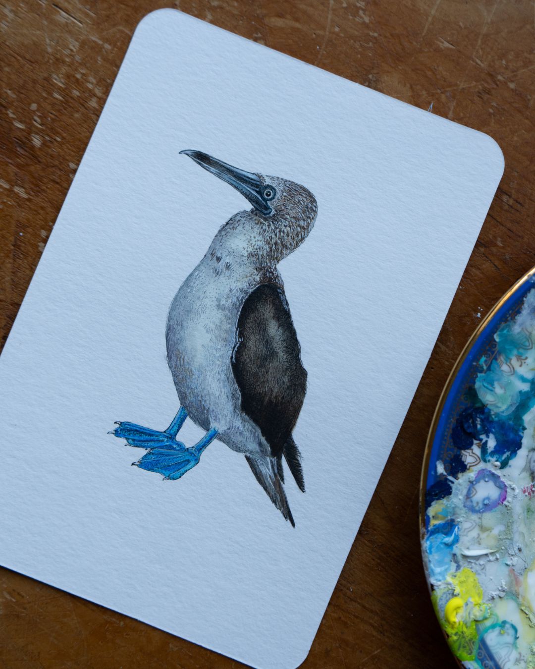 Blue-footed booby original watercolour illustration