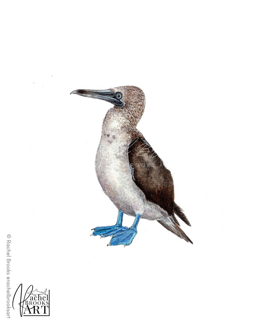 Nature-inspired original artworks by internationally selling marine wildlife artist, Rachel Brooks. This scientific illustration features the Blue-footed booby, Sula nebouxii
